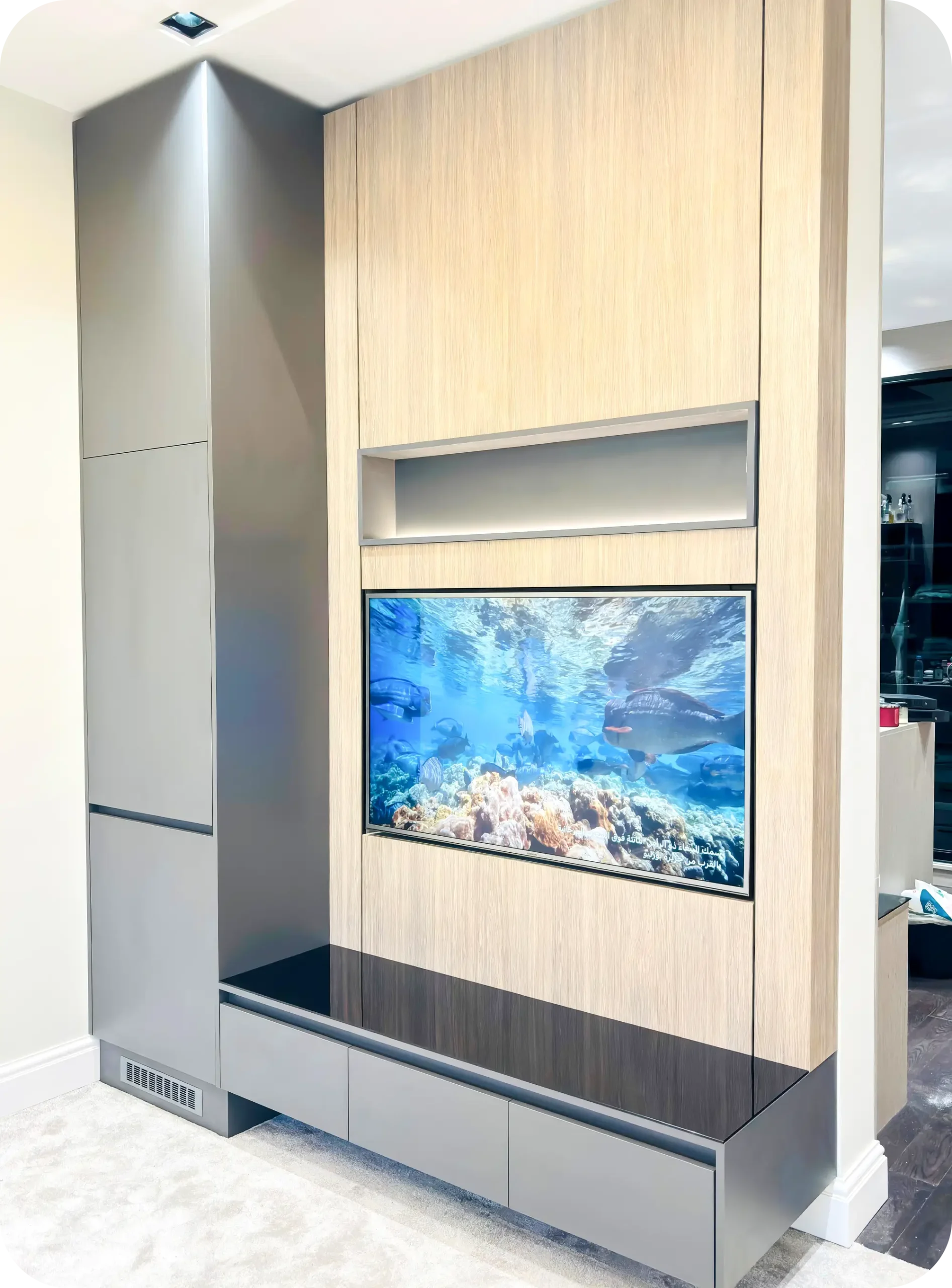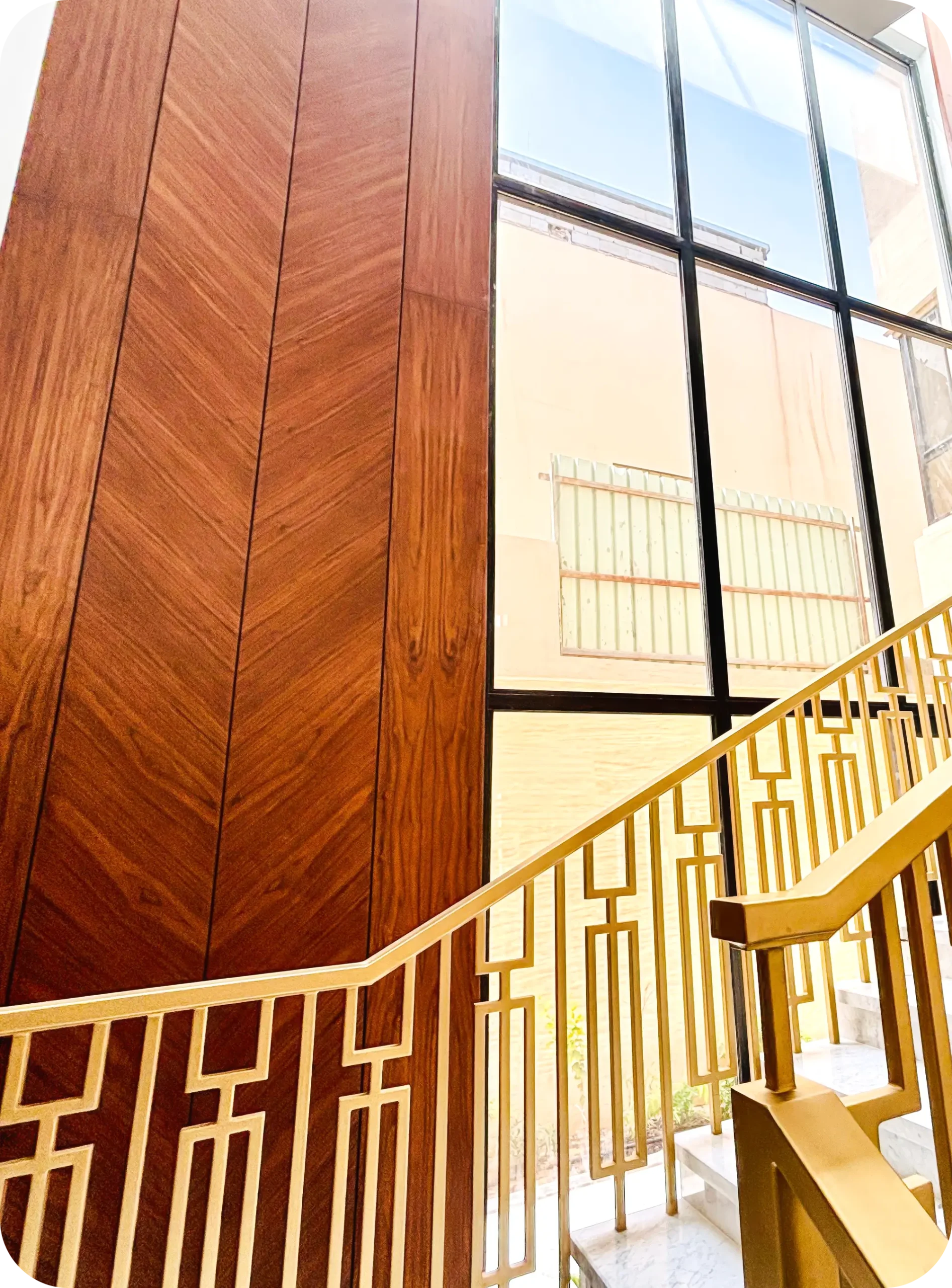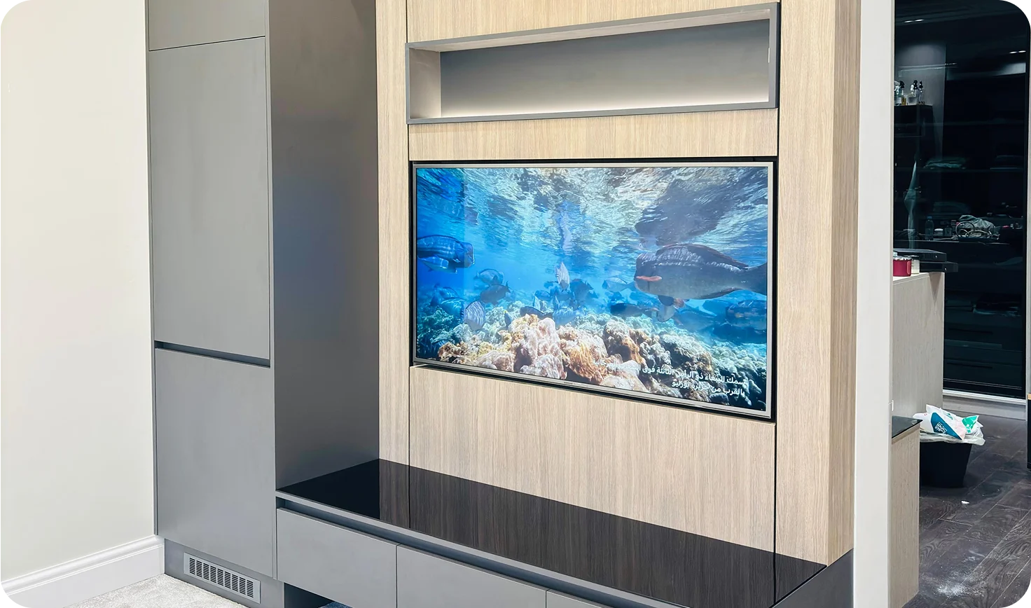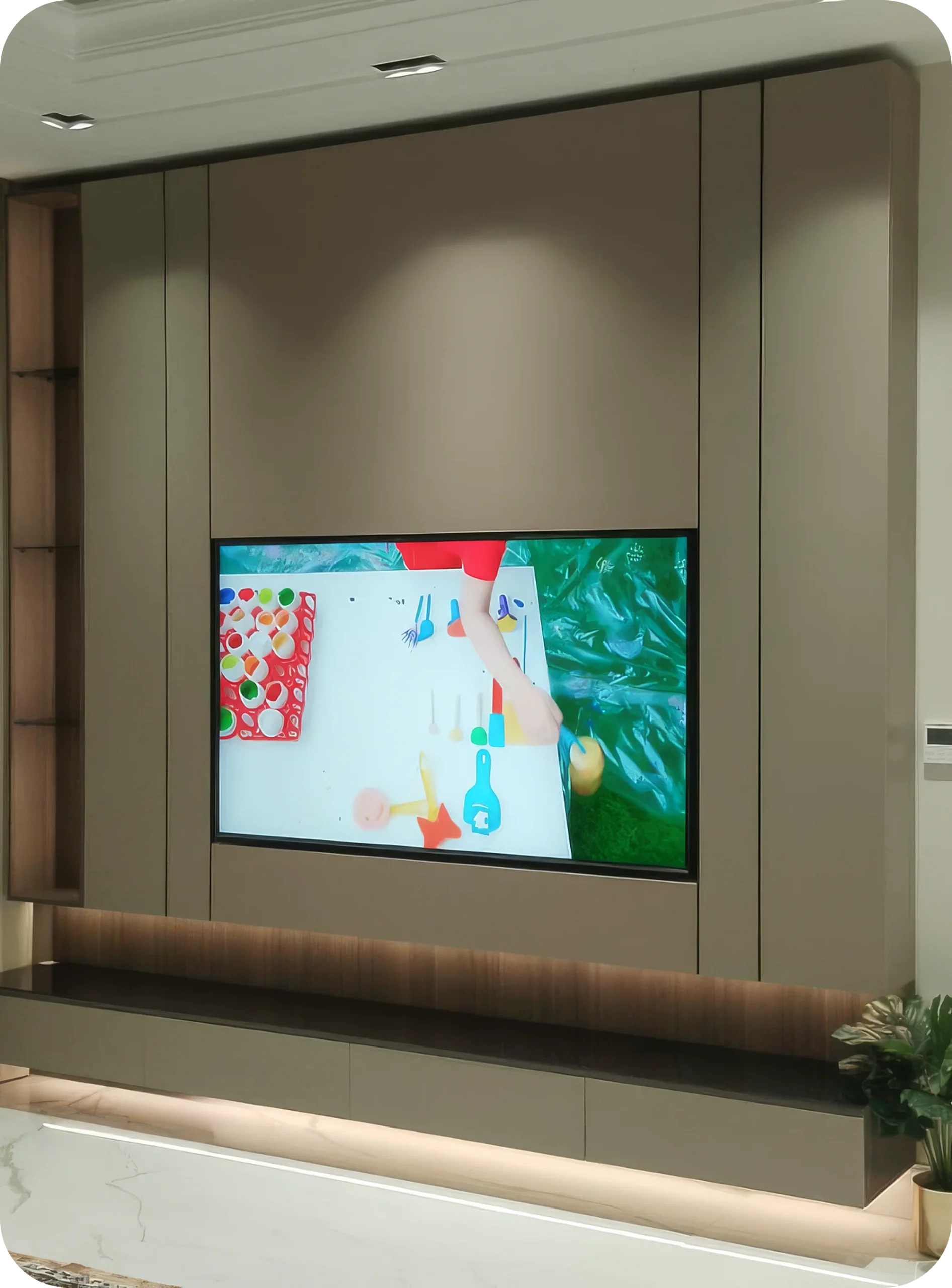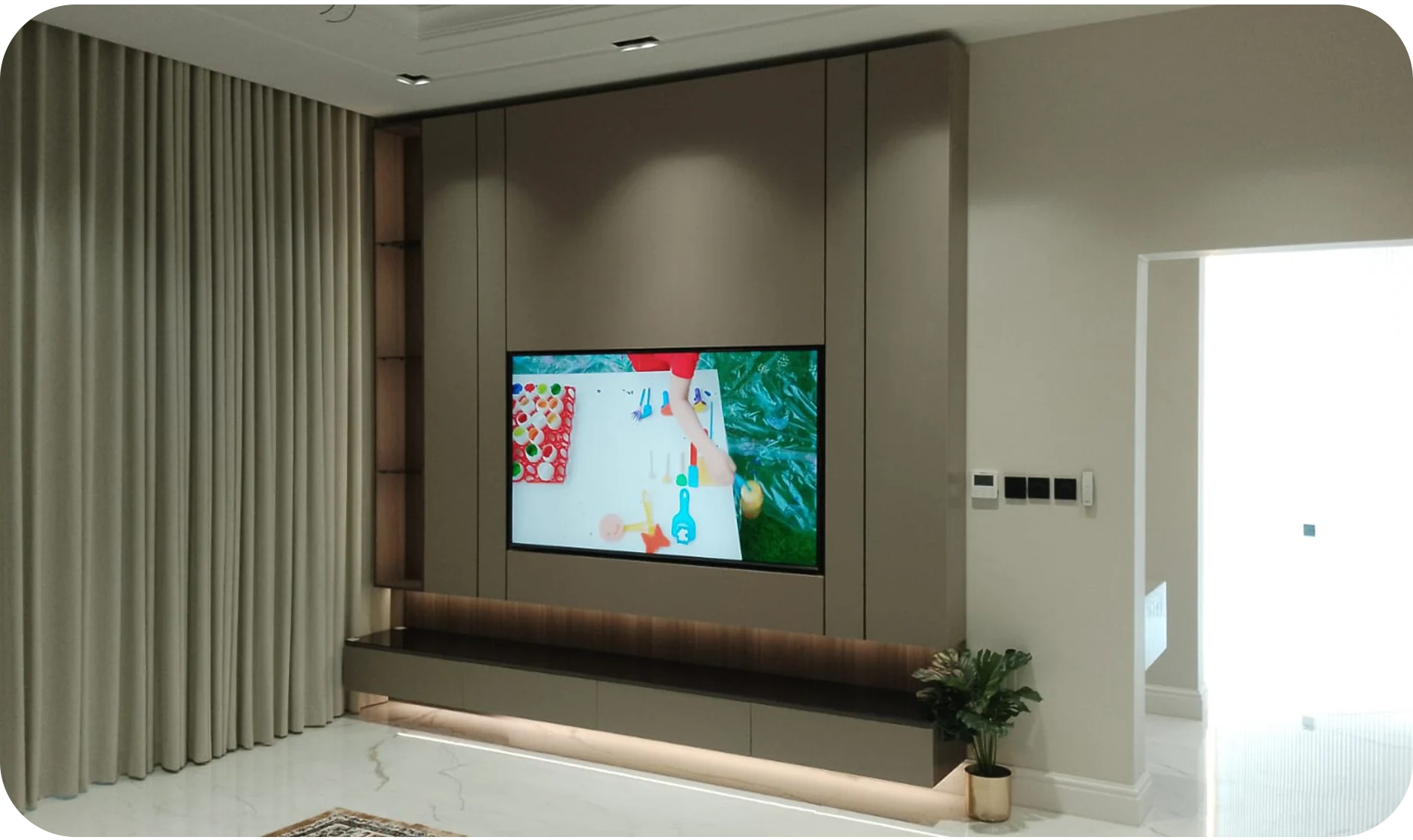 نحوّل الجدران الصامتة إلى لوحات فنية عبر تكسيات خشبية للمداخل، خلفيات التلفزيون، الفواصل الديكورية، بديل الخشب والرخام، وخلفيات TV Units.