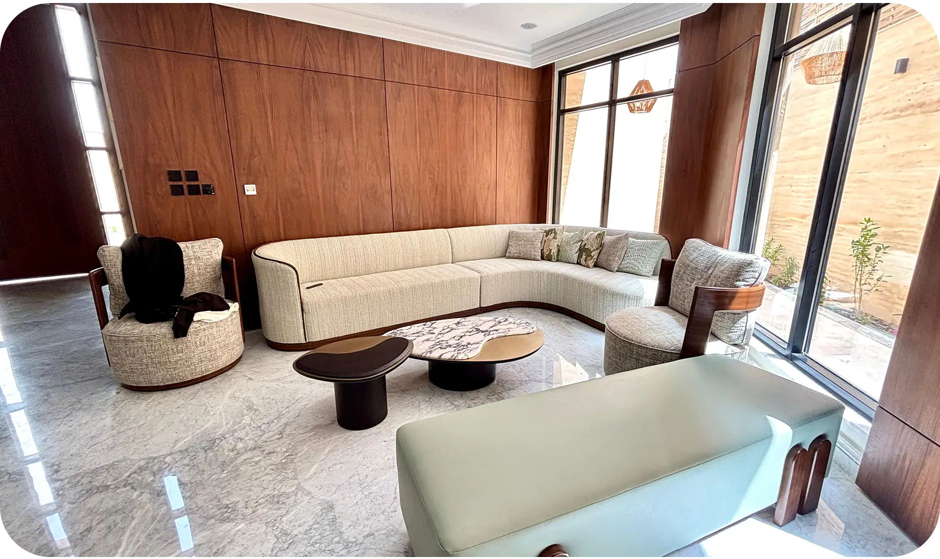 نستخدم أفضل الخامات والأخشاب العالمية لضمان الديمومة والفخامة.